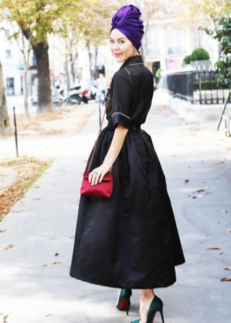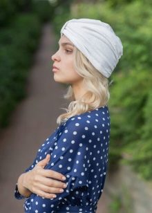 In the summer, a lightweight female turban with a dress on the floor becomes a fairly popular combination. And also this headpiece looks great with a short dress in a light shade. If you are a fan of strict style, it is best to wear a turban with a minimum number of lines along with a strict dress to the knees. In this outfit, you can even go to work. Another office option is a turban with a white blouse or shirt.