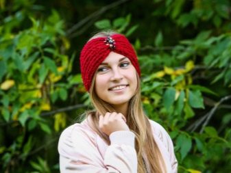 A separate variety of hats are winter hats in the form of a turban. They are made both of large viscous and of fine woolen threads. Some of them are quite voluminous, others, on the contrary, are not. Often, these hats can be decorated with a large brooch or a large sewn stone.