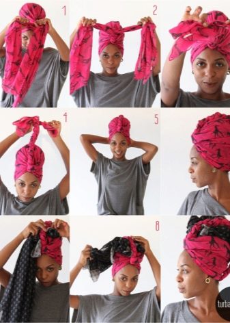 Do-it-yourself turban can be made from a scarf, a large scarf, or even just from a suitable piece of cloth. You can use pieces of fabric 4–20 m long. There are several ways to tie a turban, the most popular are Turkish and African.
