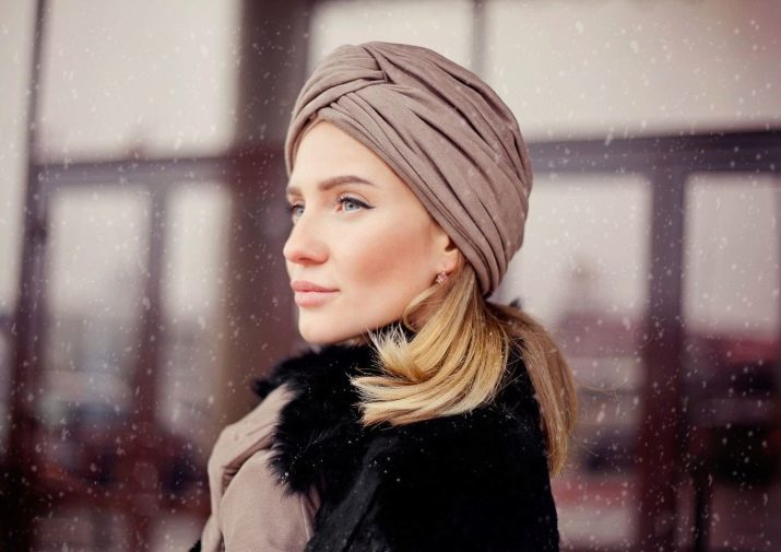 Such a headgear goes well with any clothes: from warm fur coats to light short dresses. The advantage of a turban can be called the fact that it fits snugly to the head, hiding thereby the hair, which you can not spend too much time styling. And also a turban can visually change the shape of the face and head, create an interesting image.