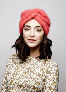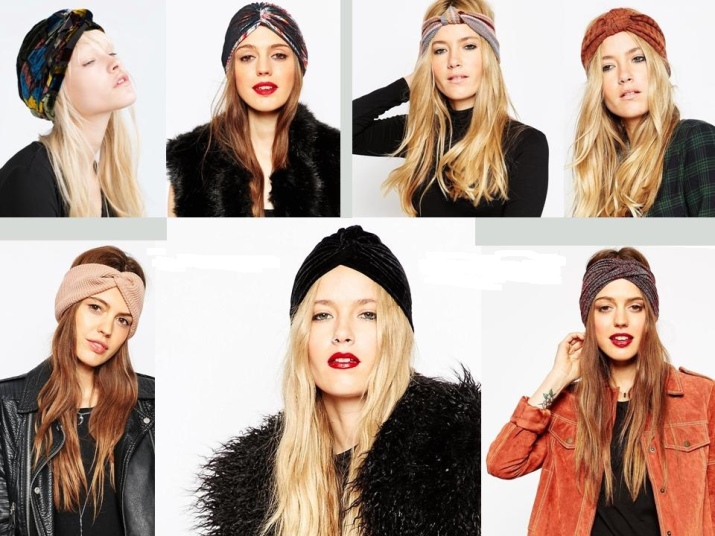 The turban bandage looks attractive and original. The center pull option is a universal choice. When knitting this style, English gum with a transverse pattern is often used.