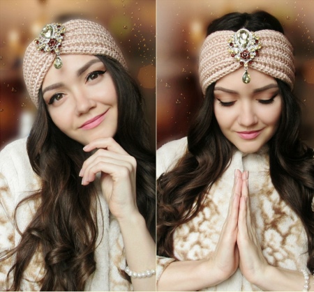 When sewing a turban, the craftswomen use a hidden thread that connects a ring of textile or yarn with a brooch. Often, such models are decorated with beads, beads or stones.