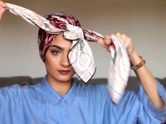 - This should be done until the tips of the scarf become completely small (10-15 centimeters). They should be tied in a knot and tucked under a turban.