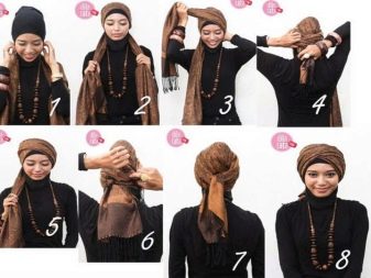 Autumn-winter option - the use of a cotton or wool stole. Due to its increased length and width of the turban, it will turn out to be higher and bulk.