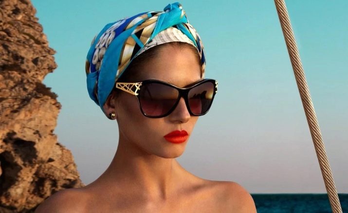 - A turban of this type is often wound up when they go to the beach. It harmonizes well with dark glasses, round gold earrings and bright red lips.