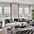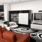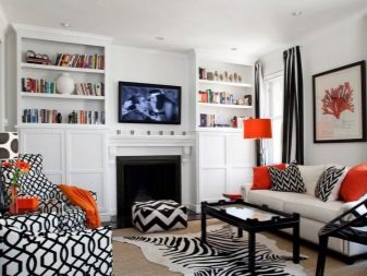 When decorating a living room in black and white combination, you must immediately decide which color will be the main and which will play a supporting role. An attempt to solve this problem “head on”, using a 1 to 1 ratio, will certainly result in failure. To maximize the space you need to focus on light colors. They, unlike dark ones, allow you to create a feeling of well-lit and air-saturated space. It is quite possible to dilute the severity of the black-and-white room with bright splashes.
