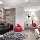 Great combinations can be created, for example, with cutting-edge red decor. Such a combination will improve the mood and make the living room more energetic. For people who are active and addicted to action, this is an almost perfect choice. Green accents make the room more harmonious. They will definitely be appreciated by connoisseurs of decorative and garden plants.