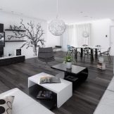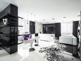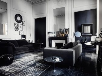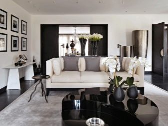 A lot of things when decorating the hall in black and white colors depend on the ability to correctly use this color. The correct distribution of shades plays a very important role. The fundamental principle of the unity of place, color and action is true in this case. It implies: