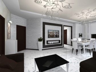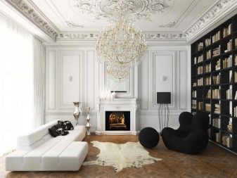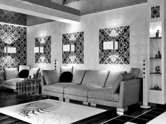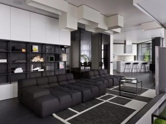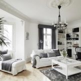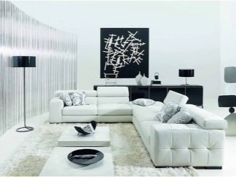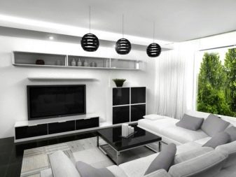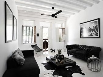 Guest space usually has the largest area in the house. It judges the tastes and personal preferences of residents. Black and white living room is quite rare. Since, from a physical point of view, black and white colors actually represent the absence of any color, texture and geometry are of particular importance. With errors in both, serious consequences can be encountered.