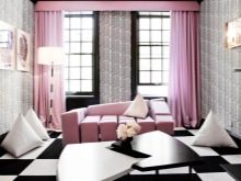 But you must understand that the color of the curtains should be dominated by either black or white. Their equal number will make the whole room very boring.