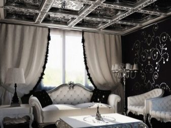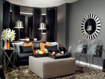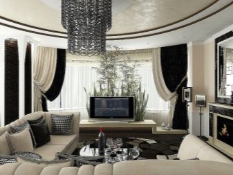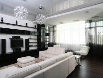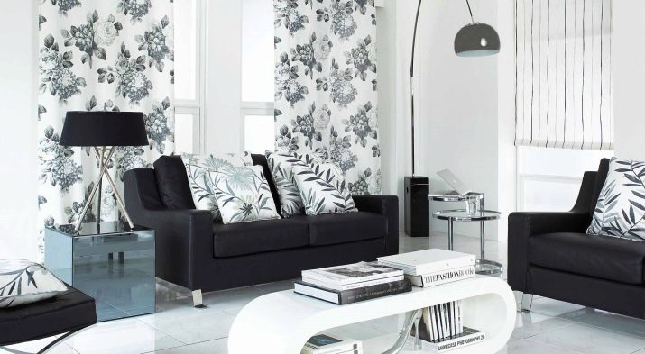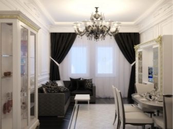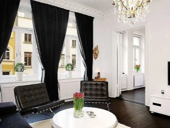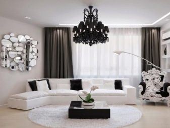 It is necessary to pay attention to the selection of accessories for the apartment. In the black and white living room, you can use curtains of any length. In classic compositions, curtains made of velvet, brocade or silk are useful. A tulle with beautiful embroidery will help to add a festive mood.