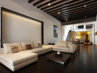 If the living room has low ceilings, you need to make the ceiling lighter, and the floor - as dark as possible.