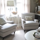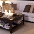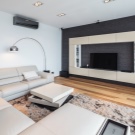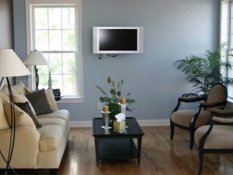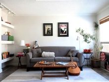 - An alternative is presented here. Thanks to the use of a relatively low table, space is not cluttered; the perspective is completely open. The gray walls and wood flooring form a very attractive contrast. The original furniture composition, placed close to the wall, makes the room even more interesting. It should be noted, of course, and the abundance of sunlight.