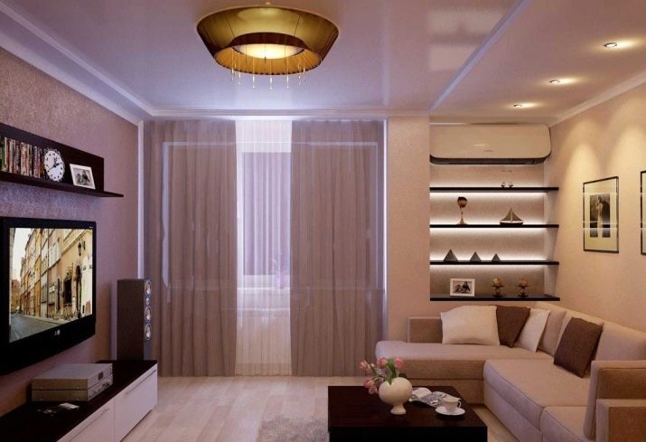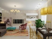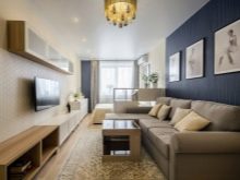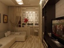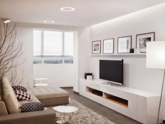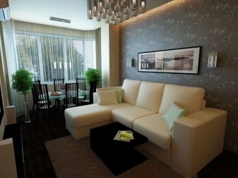 In the living room, even the most modest sizes, you can not limit yourself when selecting color compositions and decorative elements. It is possible to provide optimal conditions for everyone living in the house, but it is unacceptable to overload the interior. For visual correction of insufficient area, you can use a maximum of fixtures. If there is little visual correction, the layout of the living room with a balcony is applied, that is, these two rooms are combined.