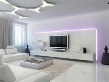A good choice is the combination of a pair of medium-sized double sofas. The smallest rooms accommodate 1 sofa and a pair of bean bags. The back side of upholstered furniture in the living room should not have rough seams and plywood details. As for the walls, using modern models is quite nice.