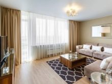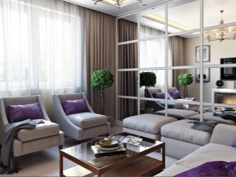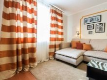 You need to know not only about furniture, but also about curtains that should be used in the hall. For northern windows, it is advised to use organza sheets. To visually increase the height of the ceiling, it is recommended to use fabric with vertical patterns. To expand the room, a horizontal pattern is better.
