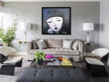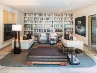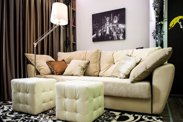 To properly equip the hall, you need to think about the dimensions of upholstered furniture. In a small space, you can use only double sofas. Only with a large area can you put ottomans and chairs. Modular sofa designs are recommended for medium-sized rooms. They can be placed in different corners of the room.