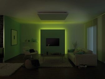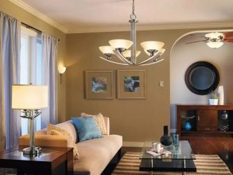 In the living room, as in other rooms, there is general and local lighting. Those parts of the room that should be made higher illuminate as efficiently as possible. It is necessary to take into account the color of the fixtures. Blue and blue tones are calming, but in this light, objects may not look too nice. Where it is more correct to use green lamps.