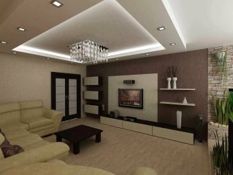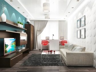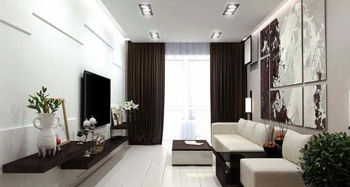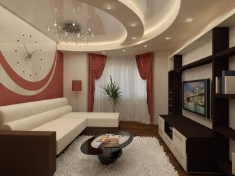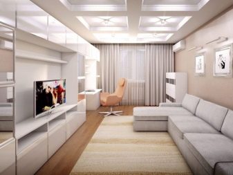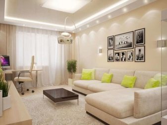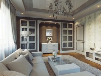 An area of 19 square meters allows you to place the main furniture inherent in the living room, that is, a sofa, a TV on a stand, a coffee table and a small cabinet. The presence of the rest of the furniture is determined already depending on the needs and interests of the inhabitants. It must be mentioned that 19-meter living rooms are often combined with a kitchen area or even a bedroom, but this is done only by prior arrangement. In panel houses of a certain type, there are even special niches in the bearing walls, which can either be completely removed to create an opening, or designed as an accent area of the room.