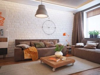 If it is decided to allocate several zones in a room, then for them one can use either different, but harmonizing colors, or different materials. The most popular colors for the living room are called white and beige. They not only create the necessary effect of space, but are also suitable for any furniture and, in principle, style.