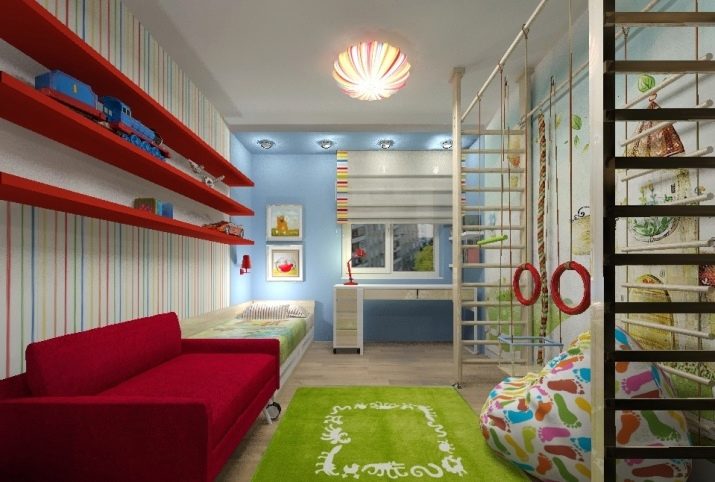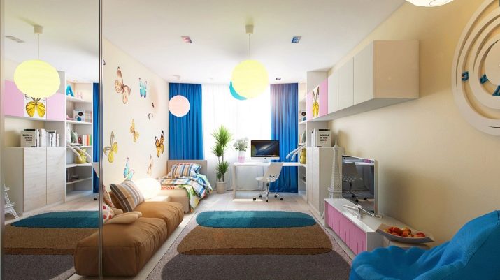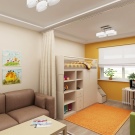 To divide one room into two, you must apply one of the methods of zoning.At the same time, it is important that the children's area has as much natural light as possible, ideally from a window opening, as well as heating devices. Given that it’s best to keep the child away from the doors, his room is recommended to be placed by the window. Make a full separation will only work if when the area of the common room allows it.