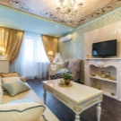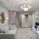The design of rooms of different sizes occurs with some differences. For example, in a one-room apartment the number of square meters often remains small, and it is necessary to fit into the space not only the living room with the nursery, but also the study with the dressing room. In this case each item must be multifunctionalfor example, the TV is located on a chest of drawers, not on a regular counter, and bed linen and towels are stored in the living room sofa.