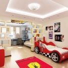 In addition, you can not do without a desk, a small locker or shelf, as well as a place for games, if we are talking about a small child. The style of the children's area should be at least slightly different from the adult to emphasize the separation.