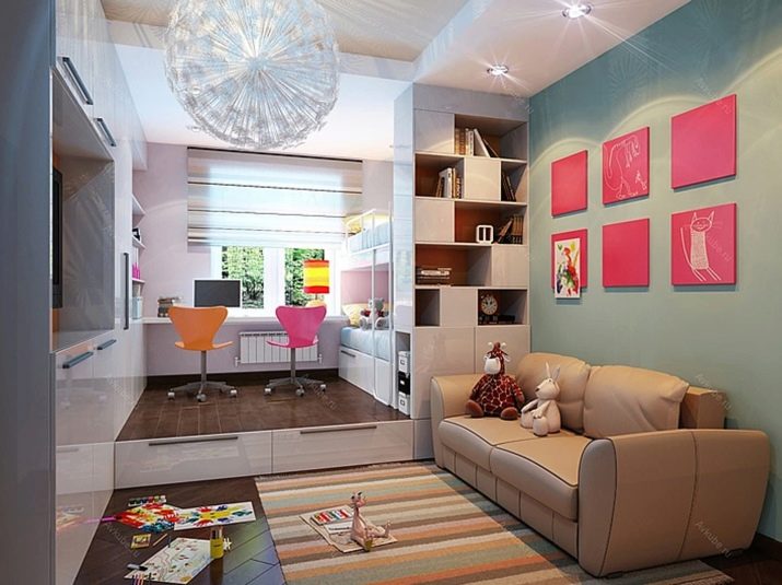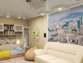 When the living room and the nursery are located in the same room, it is difficult to call this the most successful situation. However, a certain number of advantages in such a combination is still present. Of course, we are talking primarily about the necessary savings in free space.