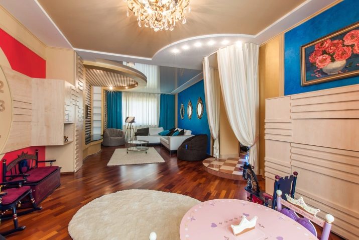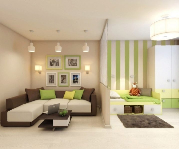 The realities of the modern world are such that very often you have to place the living room and the nursery in the same room. The traditional design of the space in this case will not work, as the personal area of the child must be separated from the common place.