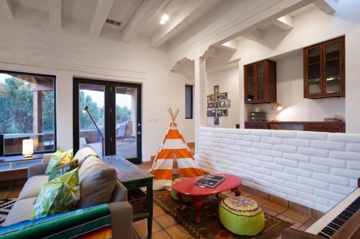 The decor in the combined room should certainly be present, but in small quantities so as not to overload the already reduced space. Materials must be chosen environmentally friendly, without any sharp corners or easily breaking elements.