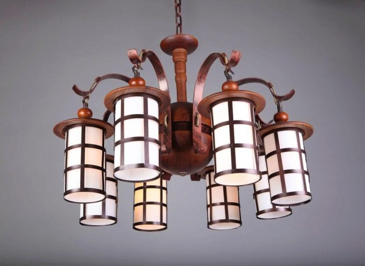 Popular models made from natural wood. In this case, bulbs made under small decorative candles will look beneficial. The shape of such a lamp can be very different.