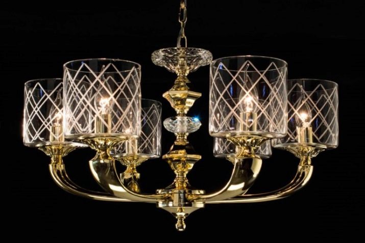 To install such chandeliers you need a shorter distance from the ceiling, so most often these models are mounted in low rooms. Often they are made with additional lighting and with decorative inserts.
