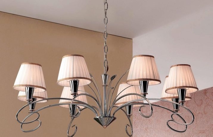 For classics, a multi-tiered light source with shades in white, beige or milk can be suitable. Often such elements are made in the form of long and thin candles. The frame can be made in brown wood or high-quality plastic.