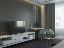 Another piece of advice that will help to save enough space on the floor, but at the same time accommodate all the necessary things, is hanging cupboards. They can be located above the TV stand. Walls are also sold, which consist of a floor stand and such drawers.