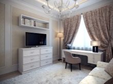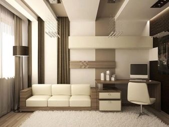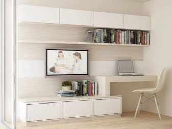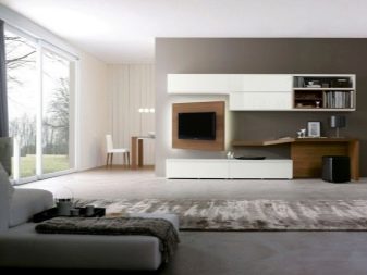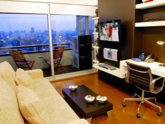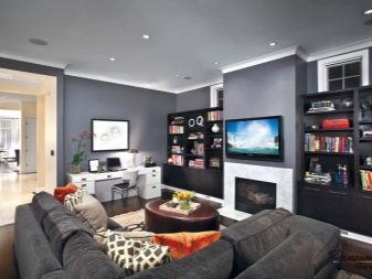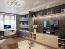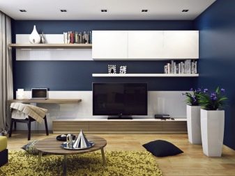 However, in such a room it will be difficult for some to concentrate only on work. This is a significant minus for people who are used to working in complete silence. In order to realize the idea from the living room, where the computer and TV will be located, it is necessary to consider options for traditional design, as well as modern and innovative solutions.