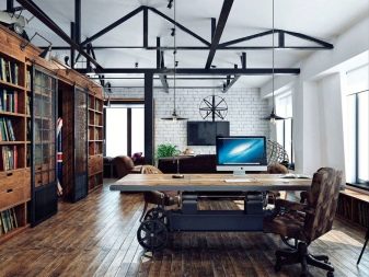 - Loft. This style is associated with brutality. Suitable for spacious rooms with high ceilings. It uses bold shades and decorations. The custom table design will look perfect here. It is important to note that it was comfortable to work for him, and the color and shade can be any.