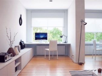 In studio apartments, the only place to create a working area is the living room. The main advantages of this placement will be: