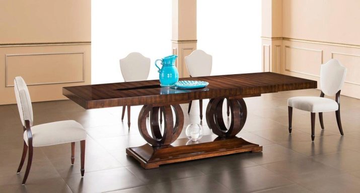 When closed, the table is a beautiful piece of furniture that can support the stylistic direction not only in appearance but also in the content of the decor. Vases with flowers, photographs in stylized frames, candlesticks and figurines are put on the table. Directions provence and shabby chic well marked by bleached or embroidered tablecloths handmade. When folded, a family of four can use the dining table, and if you take it apart, the capacity of the structure will increase to 8-12 places.
