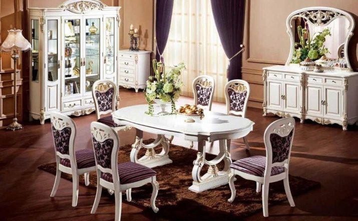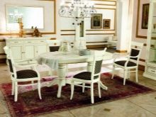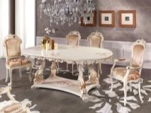 - A table with carved legs must necessarily be combined with massive and patterned chairs.