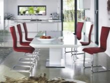 After you decide on the table, you can proceed to the selection of chairs for your room. Primarily they should fit the selected countertop, if you do not decide to buy a dining group, which comes as a set (table with chairs).