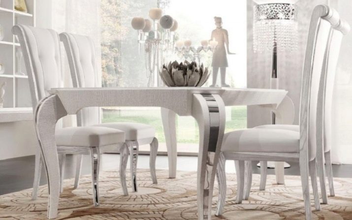- creating contrast with the help of a bright dining group and restrained tones of the room;