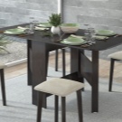 Transformer tables are on the market in a wide range. This is a design that can be folded out, and when assembled it looks quite compact, resembling a narrow pedestal, and saves space. However, when unfolding, a full-fledged table is obtained with a length of 1, 2, 3 or more meters, at which you can seat a family and guests up to 10-12 people.