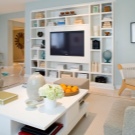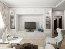 - The smaller the room, the less space is allocated for the television area. In a small room, it should be small, otherwise a visual imbalance is possible.