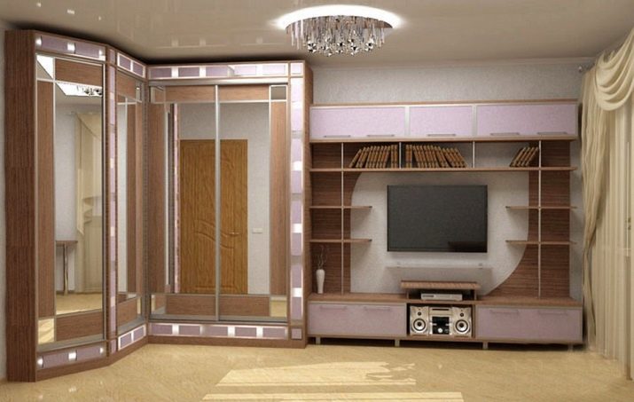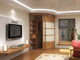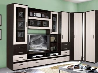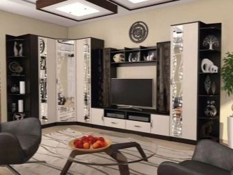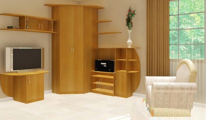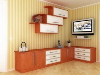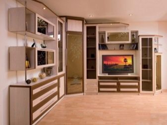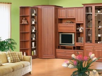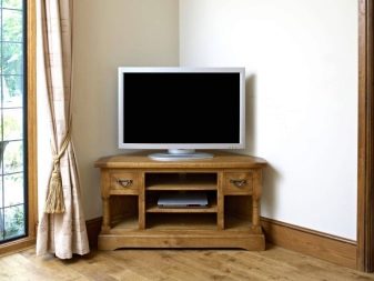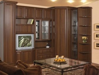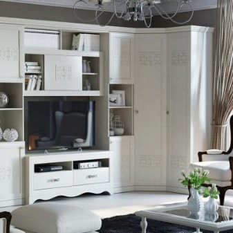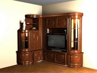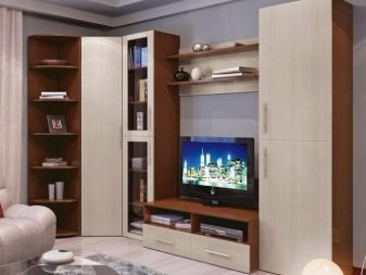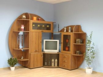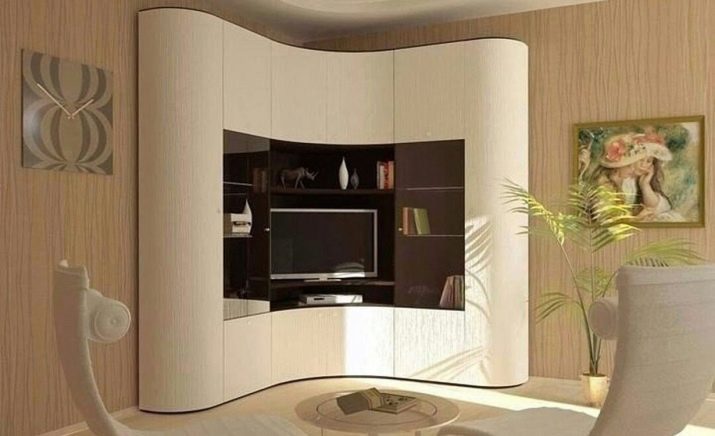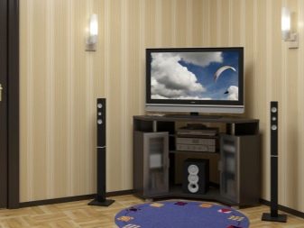 As for corner cabinets, they can only accommodate small televisions with a diagonal of not more than 70 cm, but such a design in the living room looks quite organically.