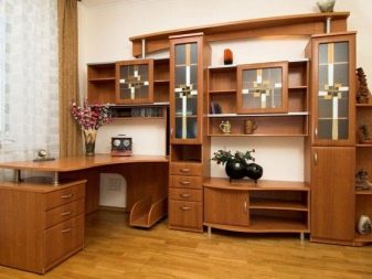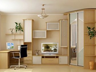 Cabinet furniture is not made in one piece, but is assembled in sections. This makes it possible to purchase items that the hostess needs and can enter a specific corner. When the issue with the selection of the wall is resolved, you must place it either according to the scheme proposed by the manufacturer, or make changes based on the capabilities of your room. For example, if a computer table is included, it is better to be closer to the window, and not in the corner, although this is not provided for in the original design.
