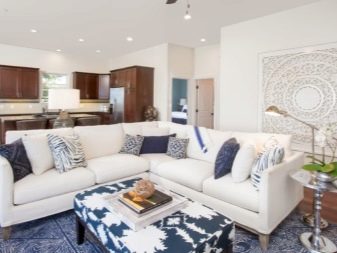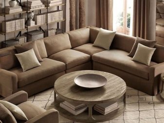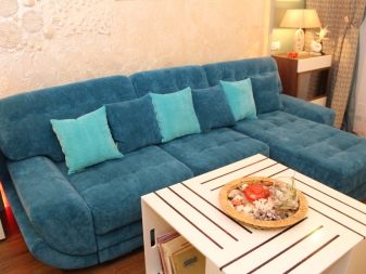 Corner furniture is good not only for small living rooms. It has the ability to create comfort in large and cold rooms, dividing them on one side of the wall or sofa into two parts.
