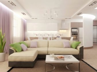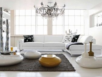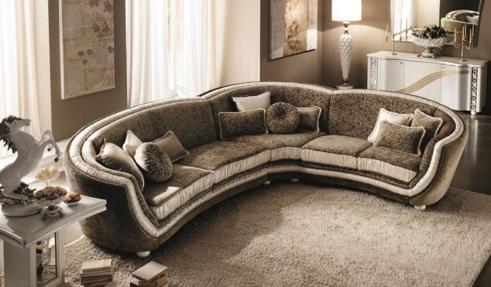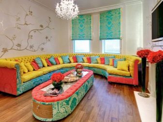 In addition to ergonomics and functionality, corner furniture is endowed with the ability to adjust the space of the room. An elongated room with a radiused sofa or a curved wall will seem square, and blind corners - smooth.