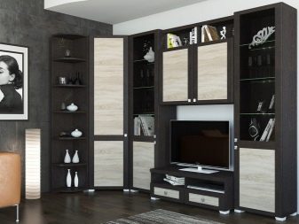 - Before you make a purchase, you need to decide for yourself - it will be the dominant group or complementing other functional furniture. For example, if a large room already has a rectilinear wall, then you need a set to organize an empty corner. Or in a small room, the corner wall takes on the main function of providing the family with a place to store things.