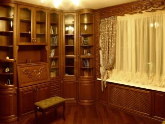 Externally, the corner furniture seems compact, but its capacity can pleasantly surprise. A wall in one corner collects all the necessary things - dishes for meeting guests, books, clothes, bedding and many little things. All objects have their places and removing them is not difficult, since they are concentrated in one corner.