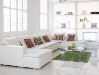 Color plays a huge role in the design of the living room, with it you can correct the geometry of the room, zoning it, supporting the style of the interior. The palette also matters for the corner furniture itself. White color will refresh the dark corner in the living room and, despite the presence of furniture, will help this part of the room to become visually spacious.